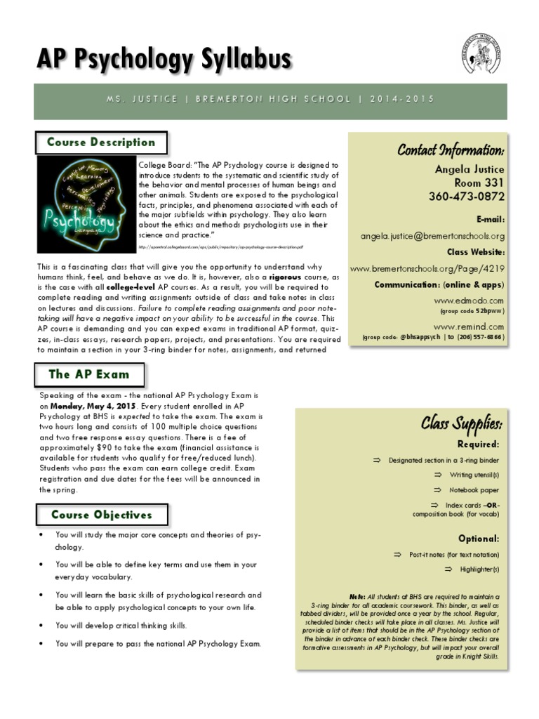 Ap Psychology Syllabus