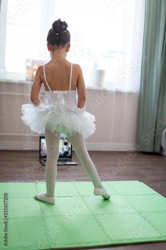 Young Ballerina Practicing Classic Choreography During Online Class In Ballet School Self Isolation Premium Photo