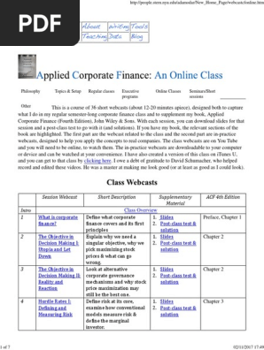 Corporate Finance Online Class Syllabus Beta Finance Cost Of