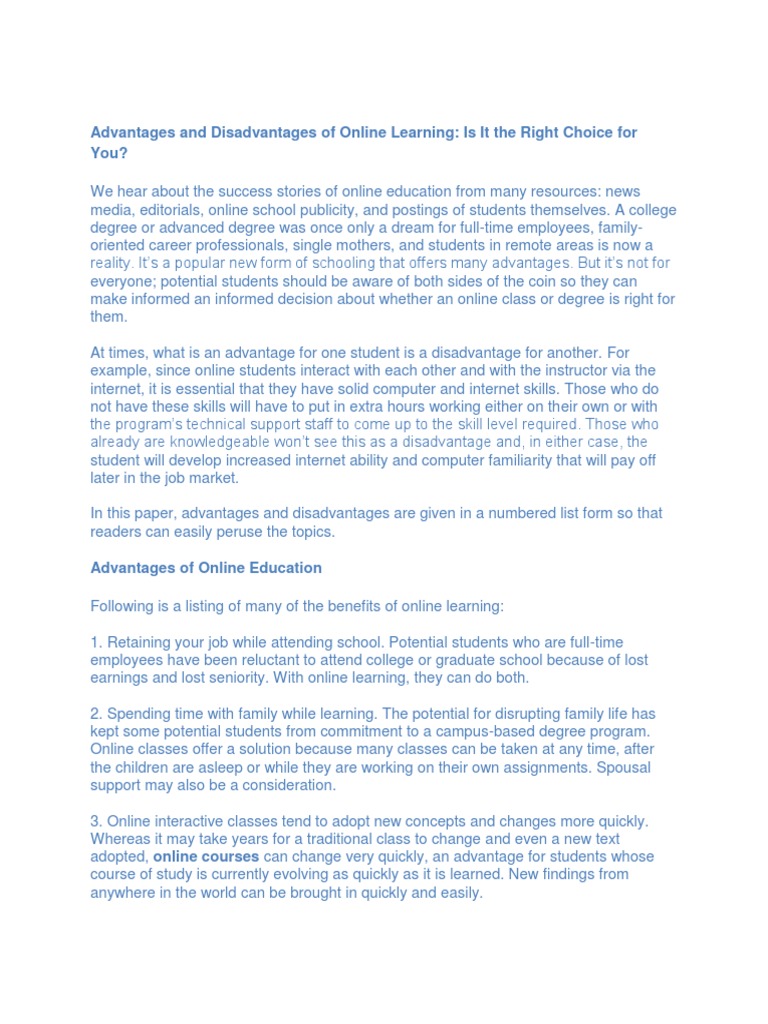 The Advantages And Disadvantages Of Online Learning