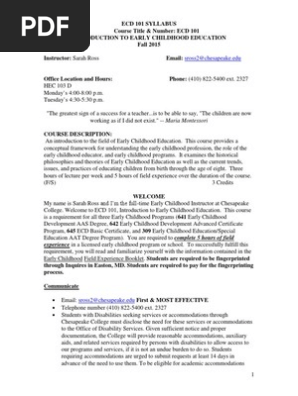 2015 Correct Syllabus Description Ecd 101 2 Early Childhood
