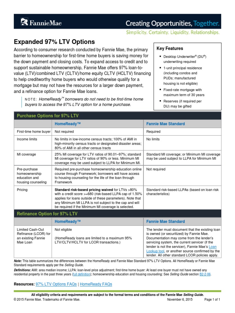 Fannie 97 Nov 2015 Loan To Value Ratio Loans