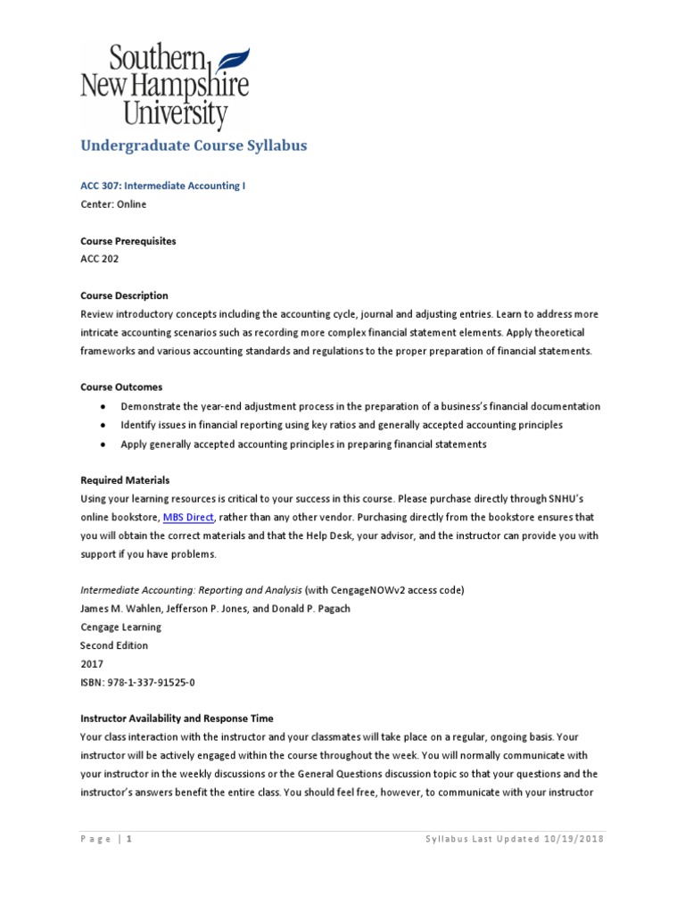 Acct 251 Intermediate Accounting I Course Syllabus Pdf Free Download