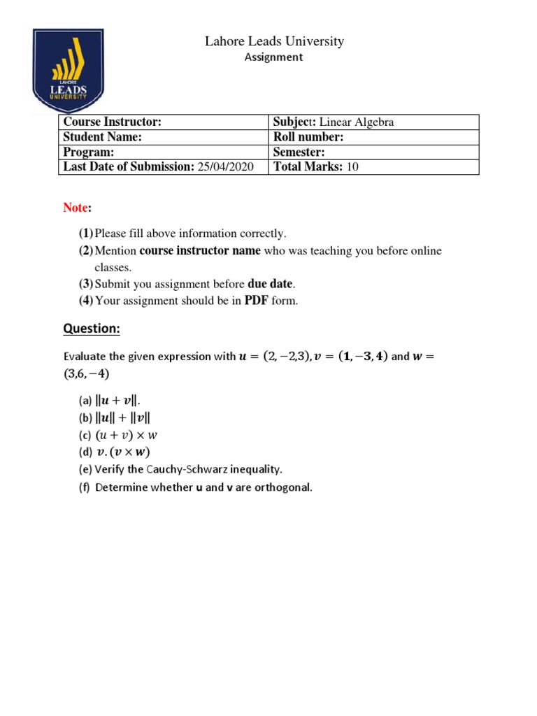 Assignment Linear Algebra 1