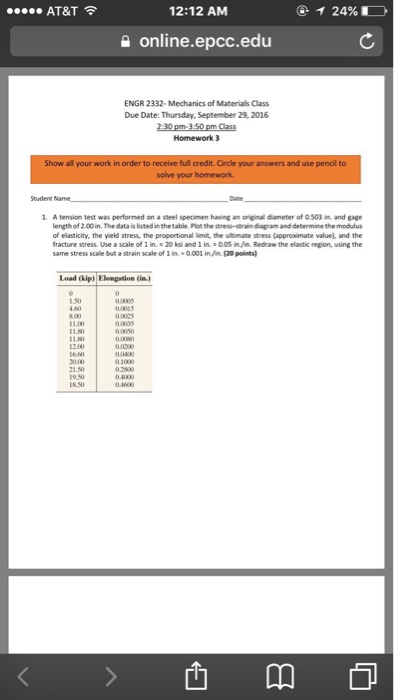 Solved At T 12 12 Am Online Epcc Edu Engr 2332 Mechani