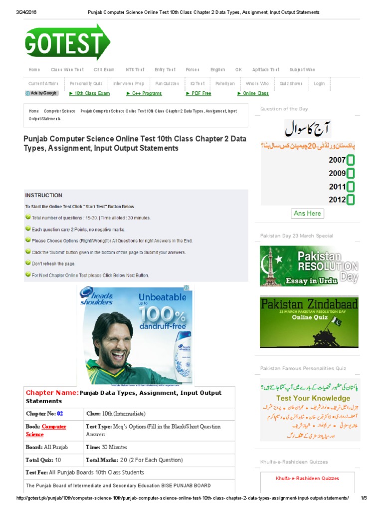Online Mcq Test For 10th Class English Online Mcqs Test With