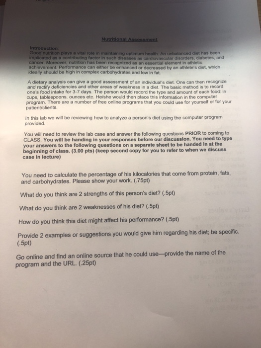 Solved Introduction Good Nutrition Plays A Vital Role In