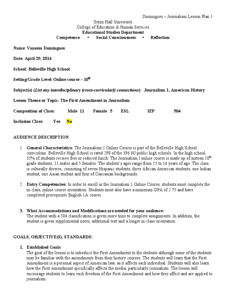 Journalism 1 Online Course Lesson Plan Educational Technology