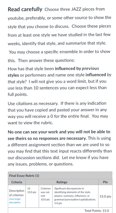 Solved I Need Help With My Jazz Final It S An Online Cla