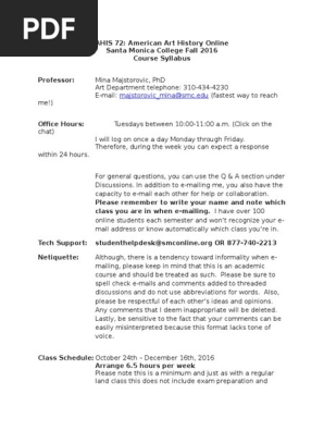 American Art History Syllabus Fall 2016 Docx Plagiarism Textbook