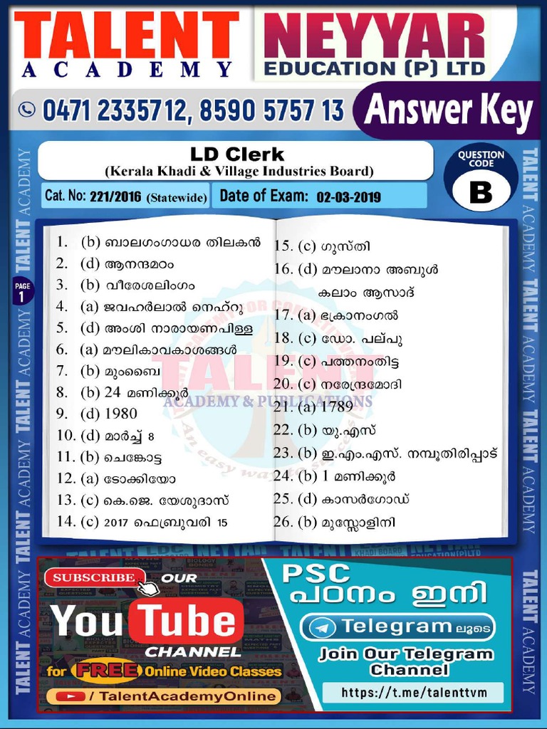 Kerala Psc Talent Academy Secretariat Assistant Malayalam