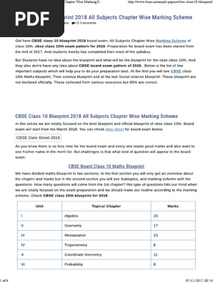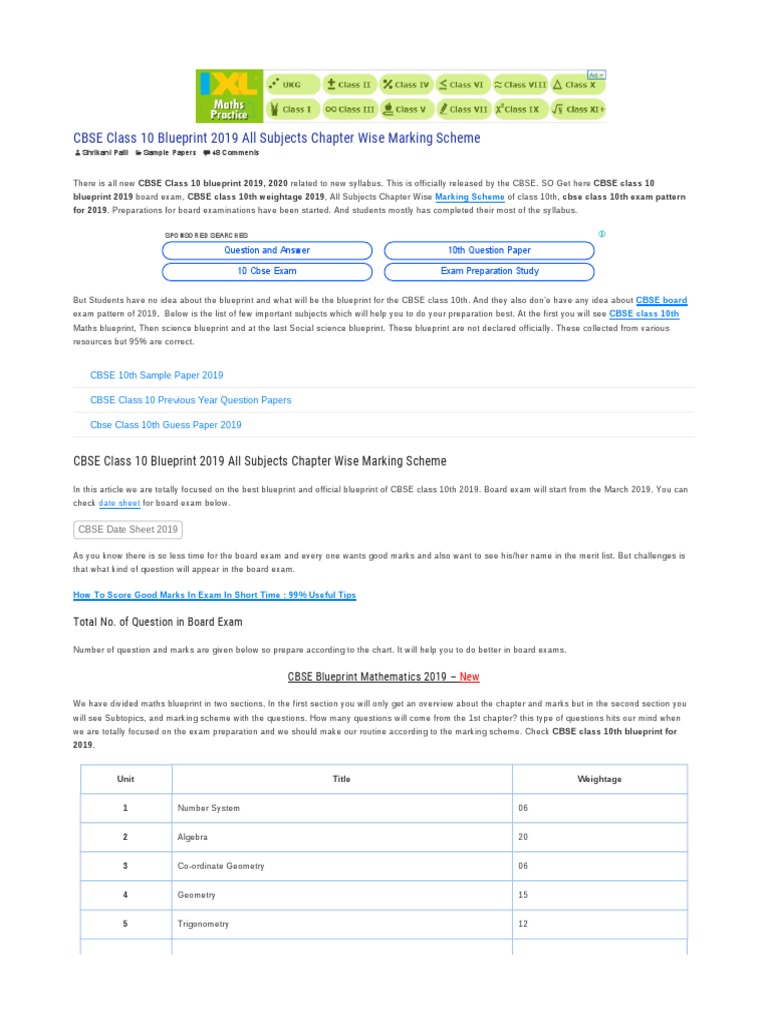 Cbse Class 10th Blueprint 2020 All Subjects Marking Scheme Pdf