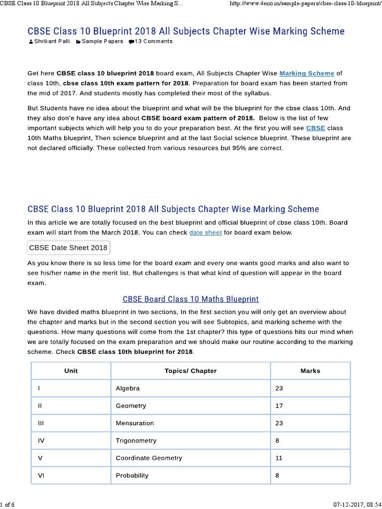 Blue Print Of Class 10 Maths 2020 Cbse Class 10 Chapter Wise